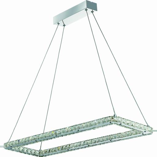 Add style and a modern edge, that will suit any contemporary home setting, with this 2 tier ceiling flush. The round chrome base and 4 cords suspend to 2 different sized rings, both embellished with clear glass. A warm white light will brighten any room of your choice. LED's use up to 75% less energy and last up to 20 times longer than incandescent bulbs.