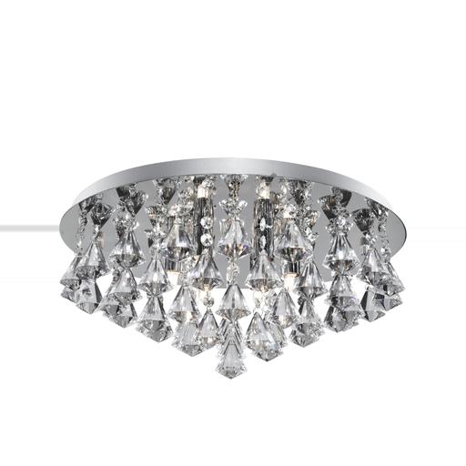 Add a dazzling effect to your bathroom using this striking Hanna flush fitting with clear pyramid crystal drops light in chrome. The four lights suspend from a chrome base and the crystal drops add a particularly elegant touch. Add as a centre piece to any sophisticated bathroom. This item has a rating of IP44, meaning that it is fully splash proof and suitable for use in a bathroom setting. LED's use up to 75% less energy and last up to 20 times longer than incandescent bulbs.