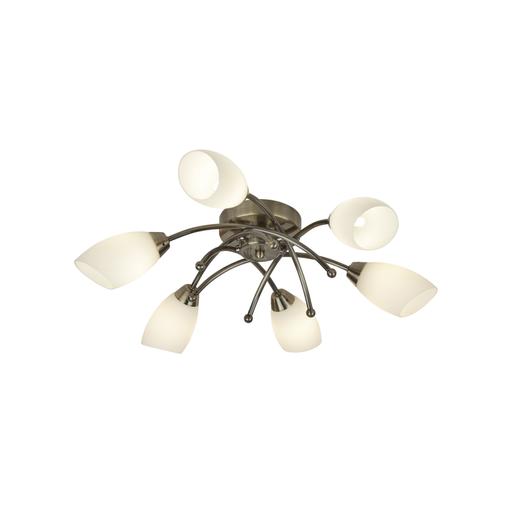Opera 6Lt Flush -Antique Brass & Opal Glass