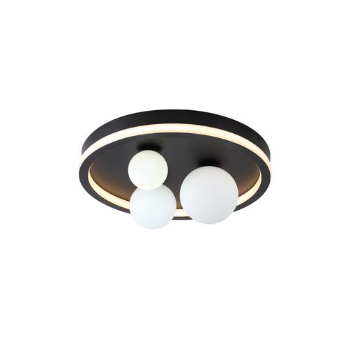 Trident 3Lt LED Flush, Black Metal and Opal Glass Balls