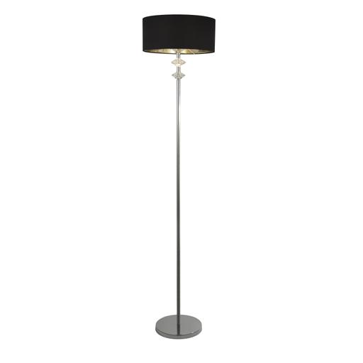 Ontario Floor Lamp - Chrome Metal & Black Fabric Shade#