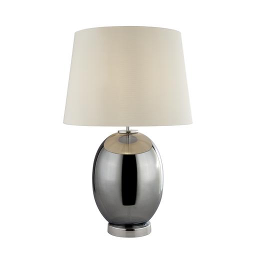 Lux & Belle Table Lamp - Smoked Glass, Chrome & White Shade