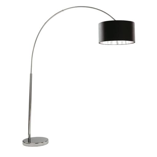 Giant Arc Floor Lamp - Chrome Metal & Black Fabric Shade