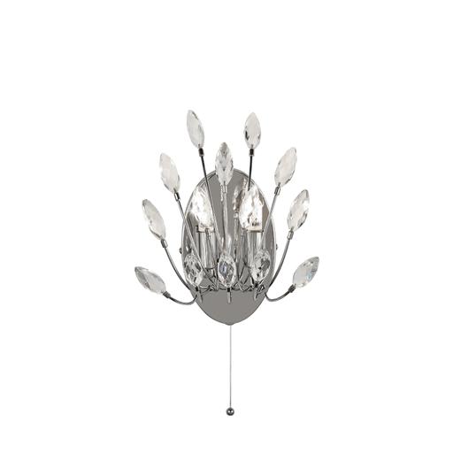 Peacock 2Lt Wall Light - Chrome Metal & Crystal
