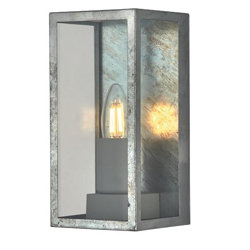 Box II Outdoor Wall Light - Galvanised Silver Metal & Glass