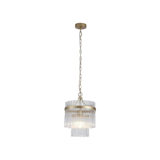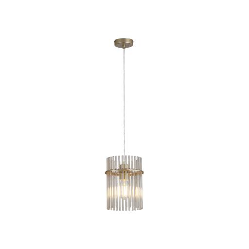 Lara 1Lt Pendant, Gold Metal with Clear Glass Rods