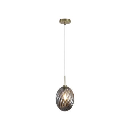 Whirl 1Lt Pendant, Satin Brass Metal with Smoked Glass