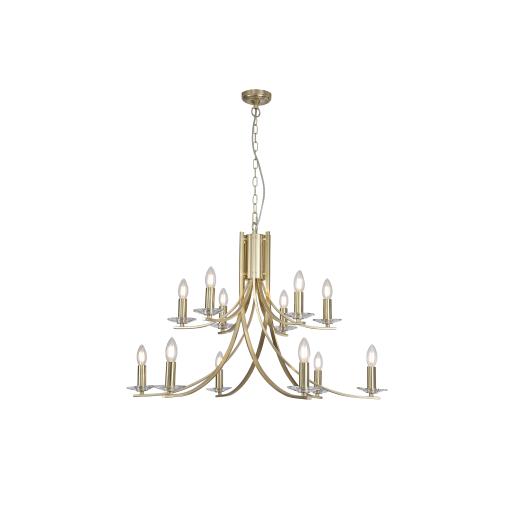 Ascona 12Lt Pendant, Satin Brass Metal & Glass
