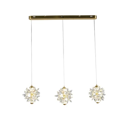 Lux & Belle LED 3LT Bar Pendant-SatinBrass Metal&Clear Cryst