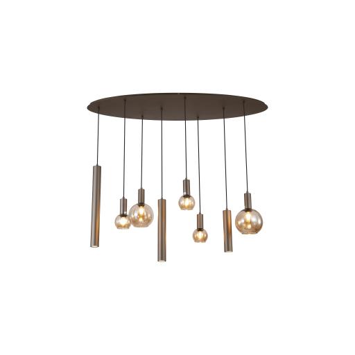 Lyon 8Lt Pendant, Latte Metal and Amber Glass