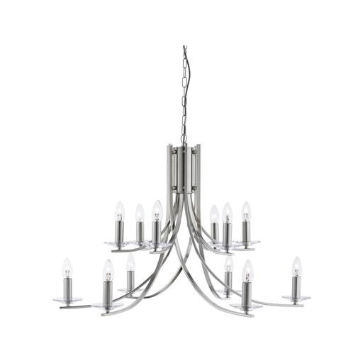 Impress guests with this Ascona ceiling pendant, complete with a satin silver twist frame, clear glass sconces and 5 lights. Suspending from a sturdy height adjustable chain, the 5 curved satin silver arms each point in different directions; allowing for an overall spread of illumination. The glass sconces house exposed candle lamps which creates a vintage appeal. Use as a statement piece for any living room, dining room or office space.