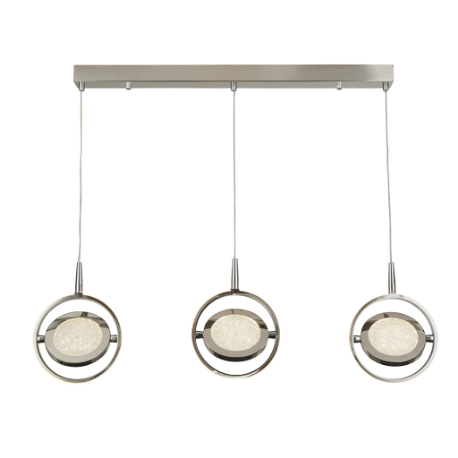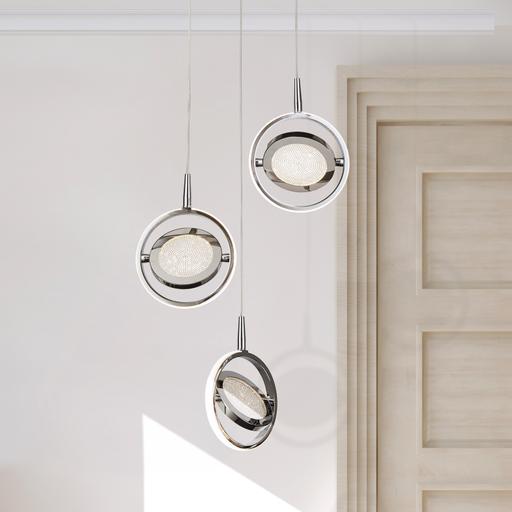 Add this eye-catching LED Gyroscope pendant to any modern interior space to make a feature. This single pendant in chrome has an adjustable height crystal sanded shade and the inner ring of this light can be positioned in different angles. An ideal light for a kitchen, dining room or bar area. LED's use up to 75% less energy and last up to 20 times longer than incandescent bulbs.