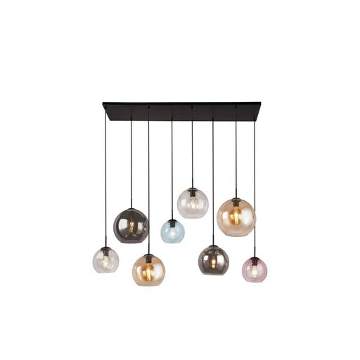 The Mardi Gras II 8Lt Multi-Drop Pendant combines timeless elegance with a vibrant burst of colour. Crafted with precision from mild steel and glass, this pendant displays the perfect blend of durability and style. It features a striking design with globe/sphere-shaped shades in blue, yellow, pink, and smoked colours. These shades bring a lively and dynamic element to the pendant, creating a captivating focal point in any room. The variety of colours adds depth and visual interest, enhancing the overall aesthetic appeal of the pendant and the space it illuminates. The glazed finish adds a touch of allure to the pendant, creating a glossy and reflective surface that enhances the overall brightness. The spherical shades not only provide comprehensive illumination but also serve as a focal point and statement piece, drawing attention and becoming a conversation piece in any home. Height adjustable, this multi-drop pendant will work for both hallways and living spaces alike.