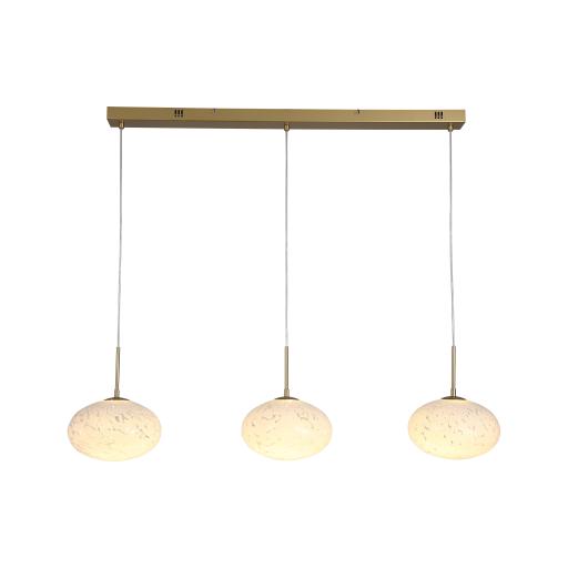 The Radiance 4Lt Bar Pendant features four champagne-tinted glass globe shades, each with delicate swirled patterning that adds texture and visual depth even when unlit. Suspended in a linear arrangement from a gold ceiling plate, the minimalist design keeps the focus on the glass shades, while the warm champagne tones and gold fittings bring a refined elegance. When illuminated, light filters through the organic swirls, casting a soft, inviting glow that enhances the atmosphere of any interior. Perfect for larger spaces, the linear format works beautifully above dining tables, kitchen islands, or breakfast bars, creating a sophisticated focal point with balanced illumination.Requires 4 x GLS Halogen bulbs (sold separately).Dimensions: Total height 120cm x Length 110cm