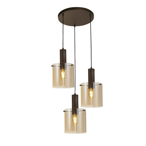 Sweden 3Lt Multi-Drop Pendant - Mocha Metal & Amber Glass