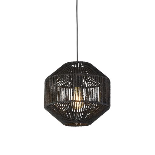 Wicker Pendant - Matt Black Metal & Black Rope Shade