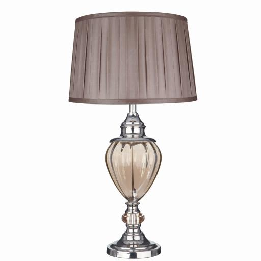 Greyson Table Lamp - Chrome, Amber Glass & Brown Shade