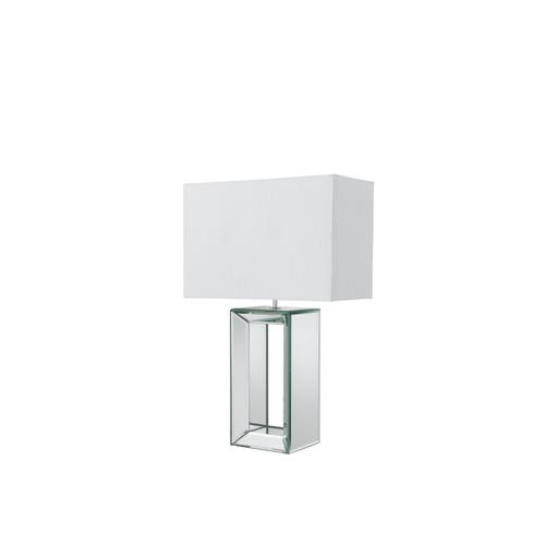 Mirror Table Lamp - Mirrored Base & White Faux Silk Shade